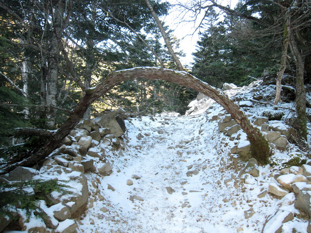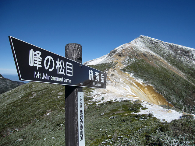 途中で、峰の松目と硫黄岳の分岐がある。峰の松目経由で硫黄岳にも出れるが、