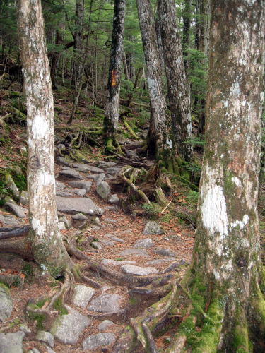 急登を登ると、樹林帯の中の稜線に出る。がここからもズーット急登。