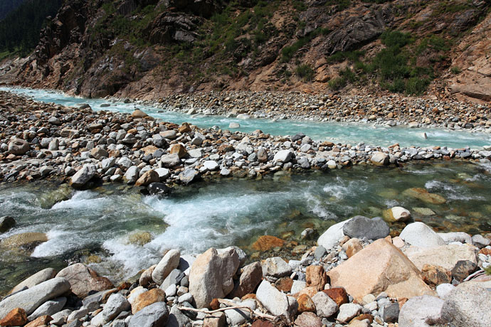 奥が湯俣川で手前が水俣川。色の違い判りますか?