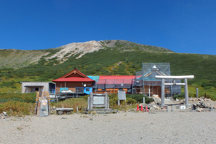 宿泊受付けはPM1:00からなんでザックを置いて空身で頂上の御前峰に向かう。天気はすっかり回復して快晴の空の中、百高山百座目に向けて登って行く。30分も掛からず山頂に着き、日本百高山90位「白山」2,702mトータル百座目の頂上に立った。(v´∀`*)