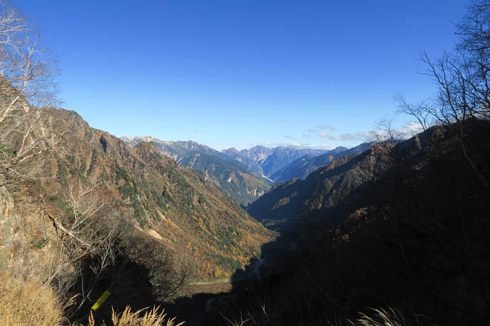 水俣乗越から槍沢大曲りへ降りる途中で、赤沢山に向かうルートが見えた。