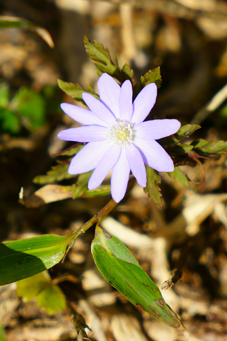 頼母木小屋に戻る途中でキクザキイチゲ