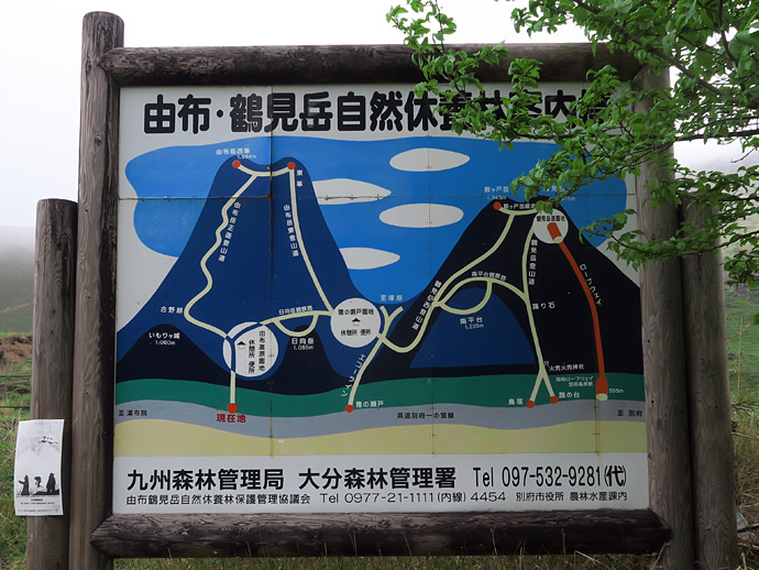 残念ながらガスガスの登山となってしまったが、下山後にガスが晴れて由布岳の全貌が見れたのでよしとしよう。