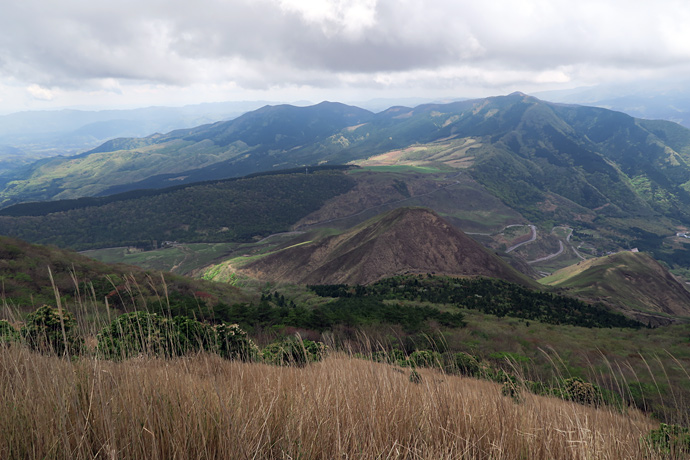 こちらは鎖場が連続する難所が続く。無難に通過し頂上ゲットした。ガスガスで展望もないのでスグに下山開始。九十九折を下山中に天気が回復してきて湯布院の町が見えてきた。牧草地帯に出るころには由布岳の頂上も見えてきた。