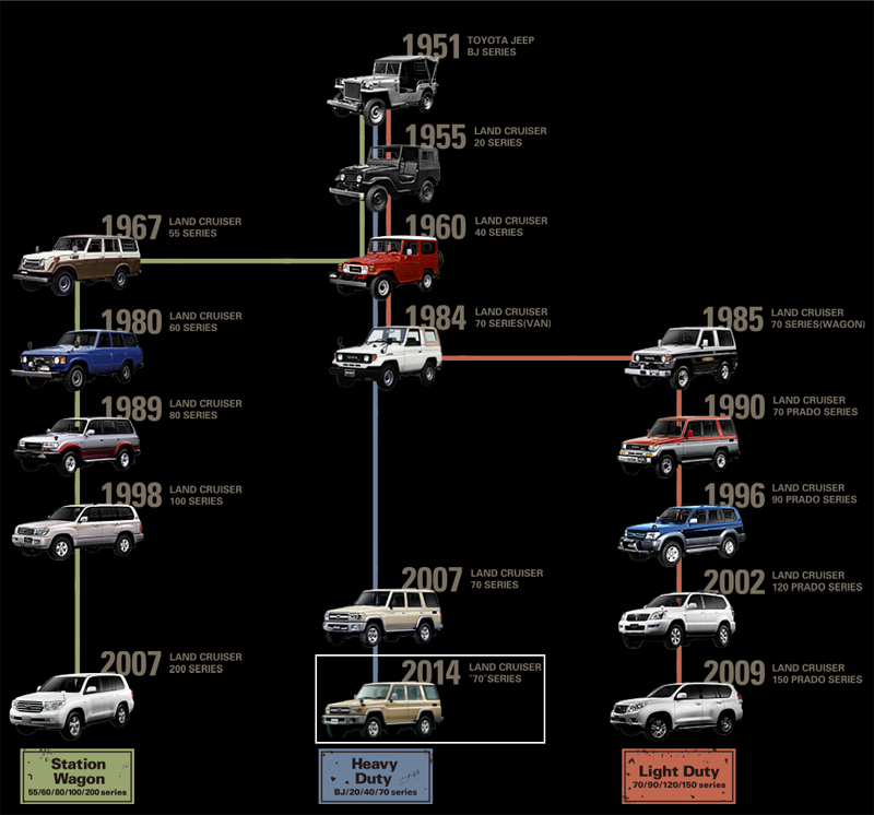 このモデルはランドクルーザーの歴史の中でも直系の子孫で、もっともオフロード走行に適したモデル。