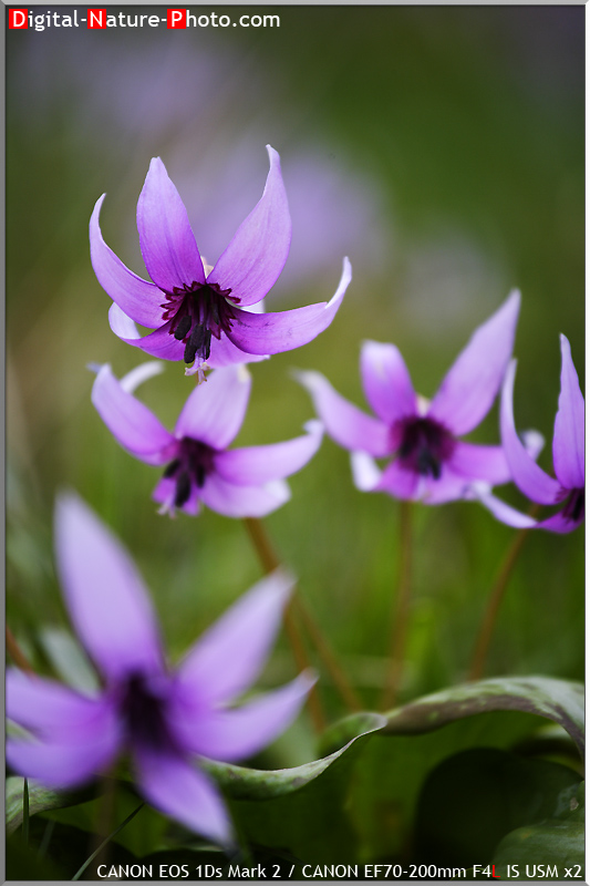 早春に10cm程の花茎を伸ばし、薄紫から桃色の花を先端に一つ下向きに咲かせる。蕾をもった個体は芽が地上に出てから10日程で開花する。花茎の下部に通常2枚の葉があり、幅2.5-6.5cm程の長楕円形の葉には暗紫色の模様がある。地域によっては模様がないものもある。開花時期は4-6月で、花被片と雄しべは6個。雄蕊は長短3本ずつあり、葯は暗紫色。長い雄蕊の葯は短いものより外側にあり、先に成熟して裂開する。雌蕊の花柱はわずかに3裂している。地上に葉を展開すると同時に開花する。日中に花に日が当たると、花被片が開き反り返る。日差しがない日は終日花が閉じたままである。開花後は3室からなる果実が出来、各室には数個-20程の胚珠が出来る。平均で60%程の胚珠が種子となる。胚珠は長さ2 mmほどの長楕円形である。染色体は大型で2n=24である。
