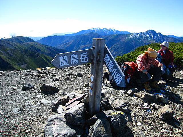 西農鳥岳から稜線を歩いてくると農鳥岳に到着。