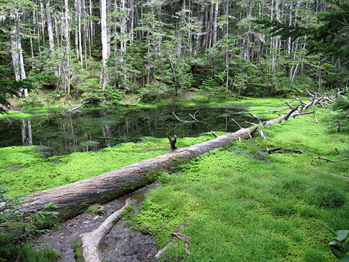 雨水が溜まって出来た小さな池で、やたらと緑の濃い池だった。