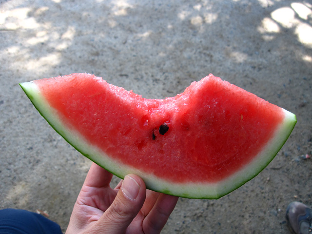 スイカ専用のロープウェイで日に何度もスイカが上がって来る。