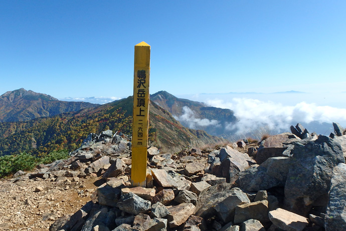 そんでもって鳴沢岳(2641m)到着。たしか日本百高山106位のはず