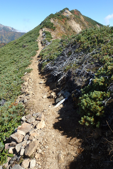 稜線を歩いたり、巻いたりするスバリ岳に向かう登山道。