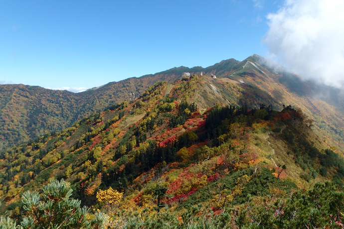 良い稜線歩きを堪能できまスた。稜線の両斜面に美しい紅葉を見ながら歩けるのは最高~♪。こんな良い所を1泊2日で足早に歩くにはもったいなさ過ぎる。2泊3日位でゆっくり歩きたいです。種池小屋でものんびりアルコールを飲みたいだけですけどネ!^^